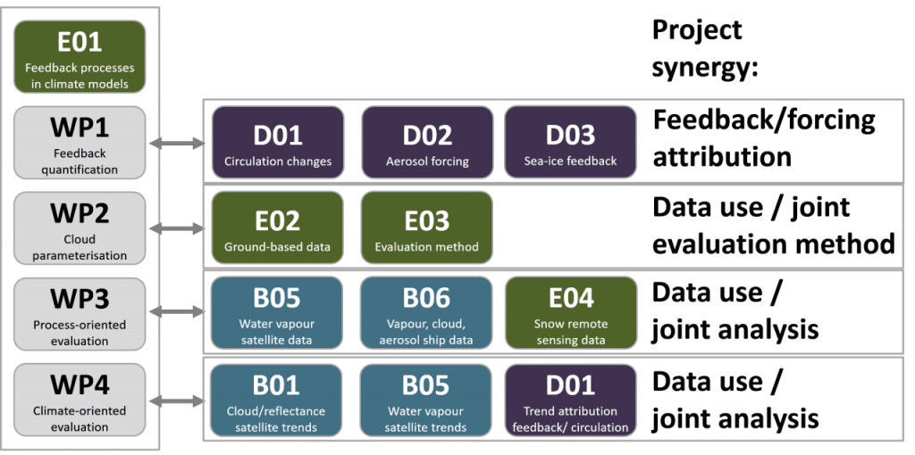 For the feedback quantification, we will leverage tools as the partial–radiative–perturbation method we developed in the past to compute the feedback strengths from simulation results of available multi–climate–model ensembles (CMIP5 and, as they become available, CMIP6). The geographical distributionof the feedback strengths in the Arctic is assessed, and the uncertainty is quantified from the inter–model spread and the methodological uncertainty. A particular focus is on the cloud feedback. We will thoroughly assess the cloud parameterizations in the ICON climate model applying different cloud parameterizations, and making use of the ground–based supersite observations. Cloud processes and distributionsin the GCM will be evaluated in a process–oriented manner with active satellite measurements (cloud radar and lidar) as a reference. Statistical relationships will be used to assess the representation of the temperature–, water vapour– and surface albedo feedback mechanisms in the models of the multi–model ensamble, in comparison to observations. In a climate–oriented evaluation, trends and their uncertainty in transient, historical simulations, will be evaluated against observed trends in the Arctic. The results of the process–oriented evaluation will be used to define and perform dedicated simulations with the most reliable model versions. From these simulations we will analyse which means (observations network, length of records) might allow a detection and attribution of the feedback processes with statistical significance.