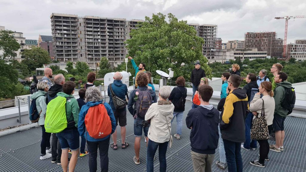 During the “Lange Nacht der Wissenschaften 2023” in June organized by the University of Leipzig and LIM scientists, our (AC)³ researches opened their laboratories and showed our remote sensing equipment to interested members of the public on the roof platform. Andreas Foth took all those interested to our roof platform and explained the remote sensing devices, some of which are also used in this form in the Arctic. During the event, André Ehrlich gave an exciting presentation on the topic of “Meteorological research in the Arctic using airplanes, ships and balloons”.